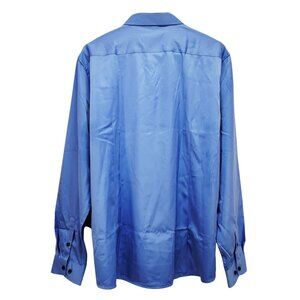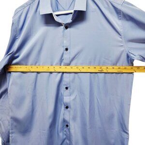 Mens Light Blue Long Sleeve Button-Down Shirt Spread Collar Black Size L