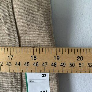 Men's lightweight jeans from Goodfellow & Co in tan. Slim fit, 32 x 34 size. Solid pattern, crafted from high-quality cotton+3 material. Ideal for casual wear.