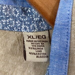 Men's Linen Blend Khaki Casual Button Down Shirt XL