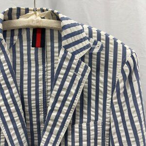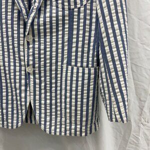 Mens Linen Blue and White Striped Blazer by Cremeaux