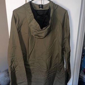Men’s Olive Green City Streets Linerless Windbreaker with front zip kangaroo pouch style pocket, elastic drawstring waist