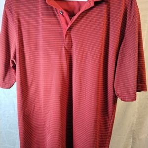Featured here is a Men's brand name Links Red and Black Thin Striped Polo Collared Short Sleeve Shirt in a Size Large. This polo shirt is in excellent condition with signs of minor wear. Thanks for taking a look and Namaste!