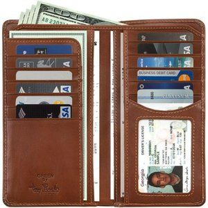 🧿Spacious Utility: Features a total of eleven credit card slots, a checkbook holder flap, three receipt back pockets, a currency gusset pocket, and an ID Window. The long wallet measures 3.5"(L) x 6.5"(H) x 0.50"(W) and weighs 0.70 lbs.