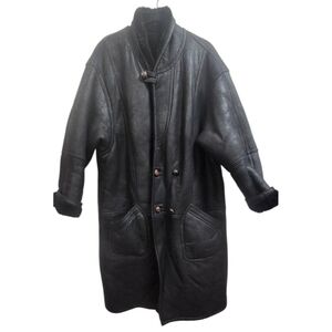 Vintage Men's Black Leather Coat with Shearling Lining – Warm Winter Overcoat Size L