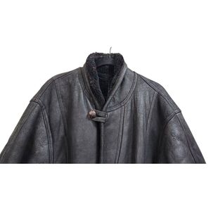 - Men’s Double-Breasted Black Leather Shearling Jacket – Heavy Duty Winter Coat Size L