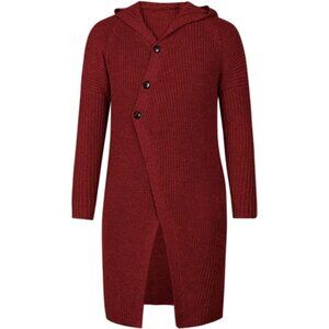 Men's Long Cardigan Sweater Hood Button Closure Long Sleeve Knit Coat