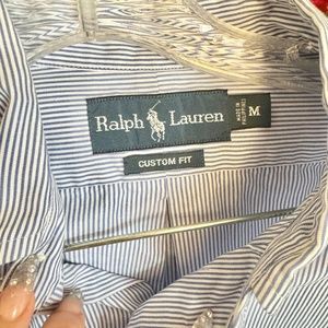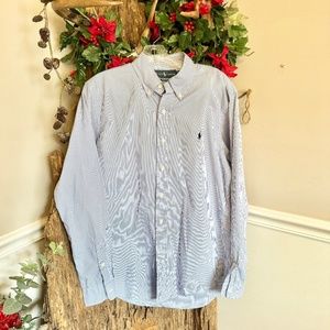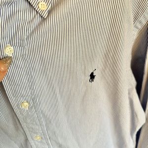 Men's Long Sleeve Blue & White Stripe Polo Ralph Lauren Button Up Size Medium
