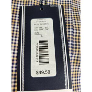 Mens Long Sleeve Button-Down Shirt Blue Yellow Check Roundtree & Yorke Size L