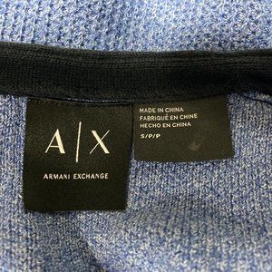 1. Men's Armani Exchange Cotton Sweater. Light blue with blue sleeves & black trim on shoulders. 100% cotton, small size. Nice lightweight summer sweater. Very good condition - never worn.