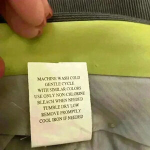 These pants have the look of dress pants but feel like athletic wear. They are made of a performance fabric that is 74% polyester, 24% viscose, 2% spandex.