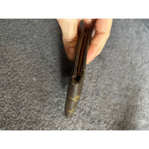 This is a pre-owned Louis Vuitton wallet, featuring the classic monogram pattern on a brown coated canvas exterior. The interior is brown leather with multiple card slots and a bill compartment. The wallet shows signs of wear, including scuffing on the edges and corners. The dimensions are approximately 4.5 inches by 4 inches when closed. There are some stains inside the wallet.