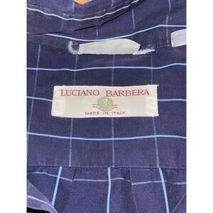 This Luciana Barbera shirt is in excellent pre-loved condition! The color is a dark blue/royal purple color and gorgeous! I am not sure what the material is, but it is very buttery soft! It has a pocket on the front, too. This is a very nice high quality Made in Italy shirt. Measurements are in the photos. Mens size large!