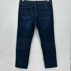 Lucky Brand 363 Vintage Straight Leg Jeans offer classic style with modern comfort. Made from a durable and soft cotton blend in a dark wash, these jeans are a versatile addition to any wardrobe.