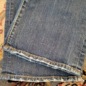 Size 33 Inseam 31" 96% Cotton 4% Spandex. Frayed around front pockets and slightly around tops of back pockets. Frayed on hems both front and back.