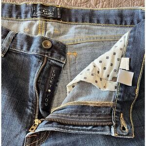 Premium Italian Denim, color is darker in true light. Size W 33 L 32.