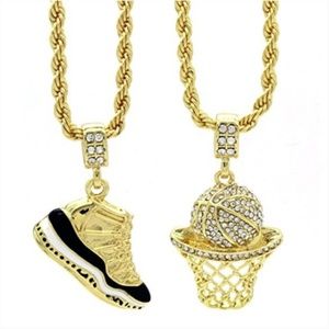 NEW Mens "Luke" Gold Plated Iced Out Jordan Retro 11s and Hoop Necklaces