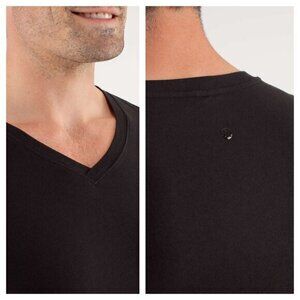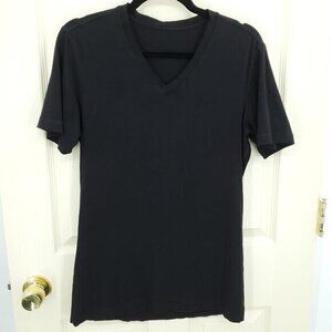 Men's Lululemon 5 Year Basic V Short Sleeve Black (Second Release) M Black, good used condition with light wear, no flaws. No size tag; estimated medium. Please see measurements below to ensure a good fit.