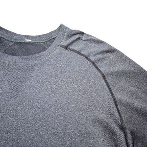 Men's Lululemon Metal Vent Tech Long Sleeve in Gray, size XL. Seamless construction and strategic venting make this anti-stink long-sleeve shirt training-session ready. Lightweight fabric is sweat-wicking and four-way stretch.