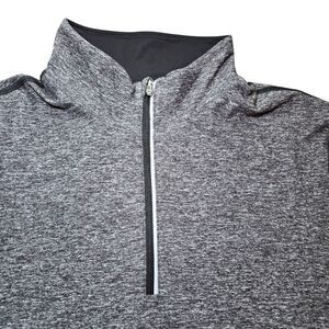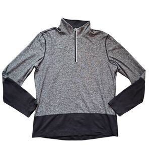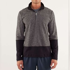 Men's Lululemon Speed 1/2 Zip in Heathered Black, size XL. This warm, wicking longsleeve has a half-zipper to make layering easy and gave it reflective detailing to help keep us bright when we're running before dawn.