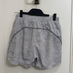 Men’s Lululemon grey & white Pace Breaker shorts, 5 inch lined. Size medium.