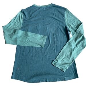 Men’s Lululemon long sleeved t-shirt with pocket. Two tone teal. Measures S.