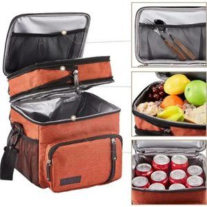🧿Convenient and Multi-use:The lunchbox has a padded shoulder strap and top handle for easy carrying.You can conveniently pack food for 1-2 people to office or wherever you want to go.Perfectly suitable for men and women to use when outdoor picnic, BBQs, camping,work,etc.(THIS ITEM IS NOT INTENDED FOR USE BY CHILDREN 12 AND UNDER.)