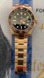 Sophisticated Rose Gold watch with a black bezel and rose gold bracelet. Perfect for any occasion.