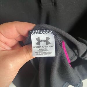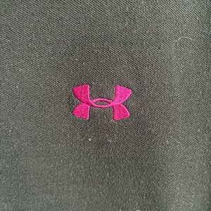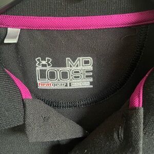 Mens Black Under Armour Purple Logo Loose Fit Polo - Heatgear - Size M - No stains, snags, or discoloration - 95% Polyester 5% Elastane - F36