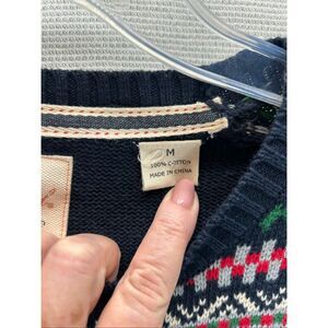 Men’s M Fair Isle Knit Sweater Navy Multicolor 100% Cotton Winter Holiday