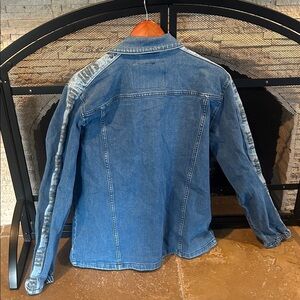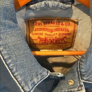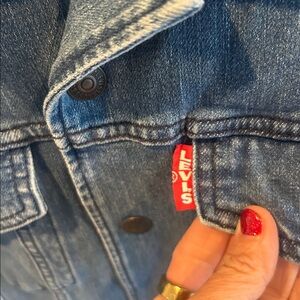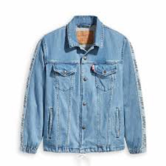 Trendy Levi's denim jacket. Features graphic detail on sleeve. Ideal for casual wear. Immediate shipping! Pet & Smoke free as always!