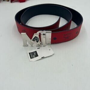 This is a brand new MCM monogram red leather reversible belt, size 50.