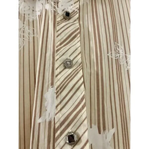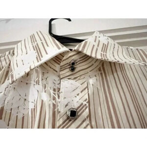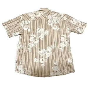 Men's MED Vintage 90s Jackpot Hawaiian T Shirt Floral Beige Fancy Buttons Cotton