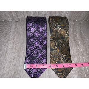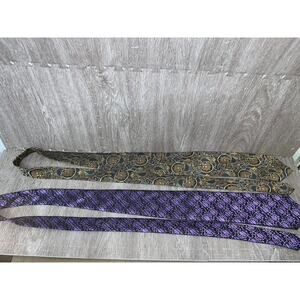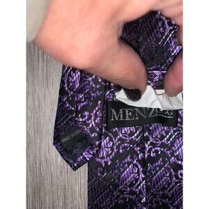 Men's MENZ Silk Necktie 2 pc Set Purple & Black Floral Geometric Design