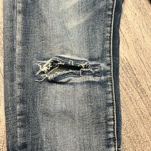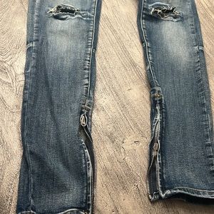 Mens MNML skinny stretch denim with zippered bottoms and knee slits. Size 31