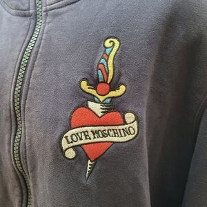 Men’s MOSCHINO “Tattoo” Full Zip Black Hoodie sz XL