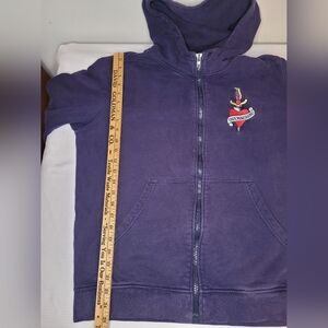 Good used condition (drawstring for hoodie missing and some wear/discoloration to zipper; see pictures)