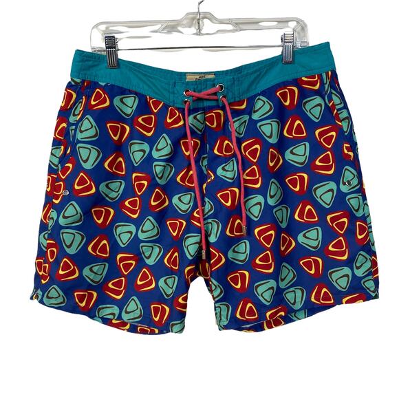 Men's MR. SWIM Sz 34 Swim Trunks Shorts with Colorful Pattern and Pockets. Pre-owned.