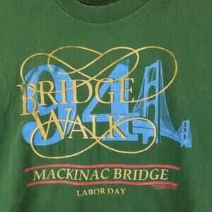 Men's Mackinac Bridge Walk 1994 T-Shirt Mackinaw Green Michigan Labor Day Large