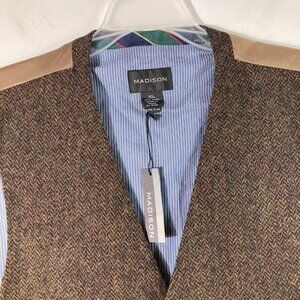 Mens Madison Wool Waistcoat Vest Lined Brown XL NWT Wool Polyester Cotton