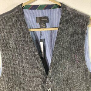 Mens Madison Wool Waistcoat Vest Lined Charcoal XL NWT Wool Polyester Cotton