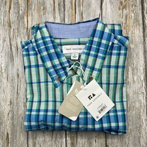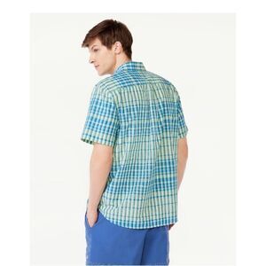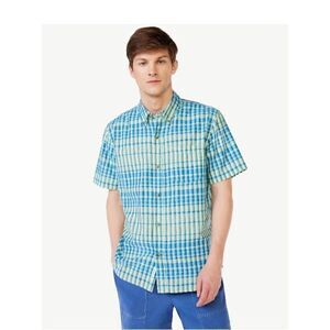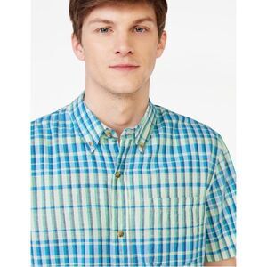 Men's Madras Button Down Shirt with Short Sleeves Size S