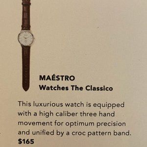 Maestro Watch The Classico retail $165 This luxurious watch is equipped with a high caliber three hand movement for optimum position and unified by a crock pattern band. 🌟👉Thank you for looking. Please read description and see ALL photos.