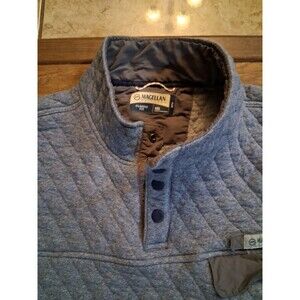 Men's Magellan 3 Snap Quilted Pullover. Size tag says 2XL. Material tag says 3XL. Lying flat, armpit to armpit measures 50", length is 29". 100% cotton. Filling 100% polyester. Good preowned condition.