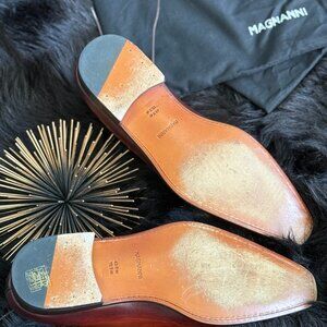 You will love the deep rich brown Cognac colored Magnanni Shoes. They have a luxurious appearance. Shoes can be worn for formal and informal attire. Shoes have been worn maybe 3 times to outside events.