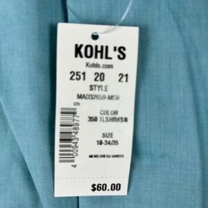 Men’s Marc Anthony Slim Fit Long Sleeve Dress Shirt in Teal Green 18-34/35