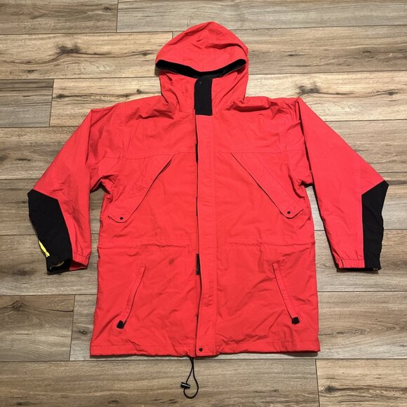 Men's VINTAGE Marlboro Adventure Team Windbreaker SZ XL Red Full Zip Hooded Jacket