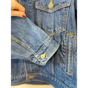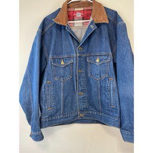 Men's Marlboro Country Store Large Denim Jacket Jean Medium Wash Button Up Leather Collar Elbow pads Cotton CL