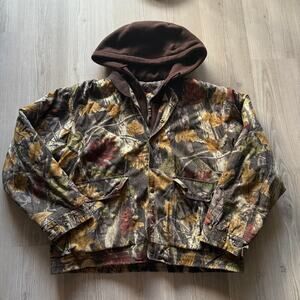 Men's Master Sportsman's Brown Red Camouflage Camo Hooded Hunting Jacket Sz 2XL