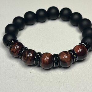 Men's Matt Onyx and Tigers Eye Stretch Beaded Bracelet