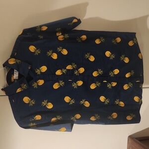 Mens Medi Old Navy Pineapple Print Hawaiian Button Down Shirt Navy Blue! 🆕️